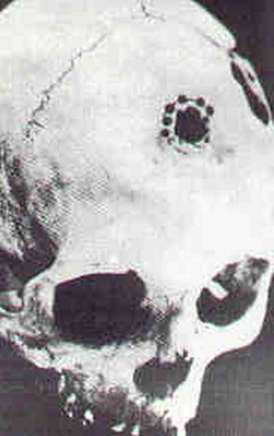 EN ESTE CRANEO DE LA CUEVA DE TOLL PUEDEN OBSERVAR CLARAMENTE LA OPERACION QUIRURJICA PARA LA IMPLANTACION DEL SUPER-MICROCHIP EN TAL CRANEO HACE MILES DE ANOS