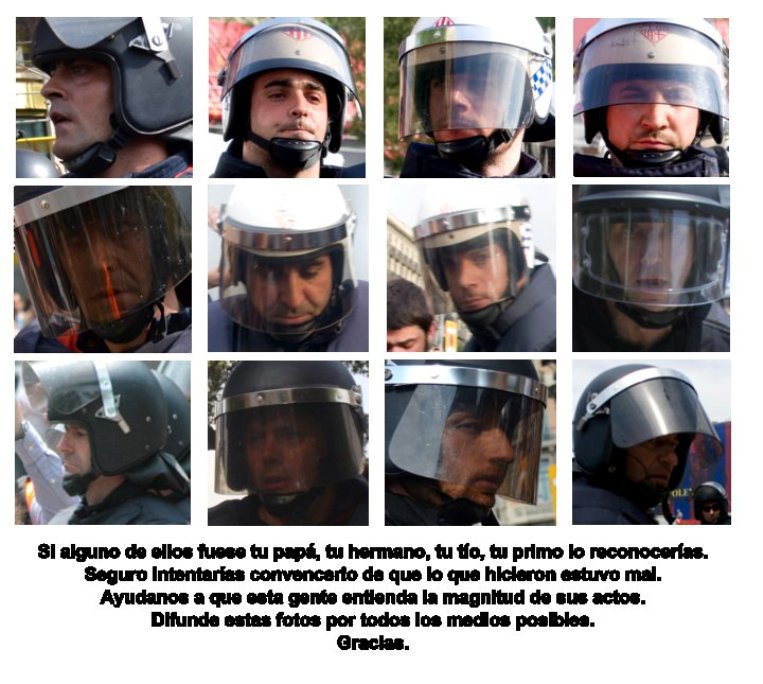 7. Estos no son policias que sirven al pueblo no hay que confundir, estos policias suelen pertenecer a acuartelamientos especiales solo y exclusivamente para reprimir al pueblo, y hay acuartelamientos repartidos por zonas estrategicas por todo el estado, y por supuesto el requisito más importante para entrar en esos grupos es el de ser brutos sin cerebros y en la mayoria de los casos psicopatas violentos, asi que si conseguimos sacar Pá lante este movimiento habrá que pensar que hacer con este tipo de funcionarios porque mandarlos al paro solamente creo que seria poco para purgar sus delitos. Y ahoran me disculpan pero necesito desahogarme.