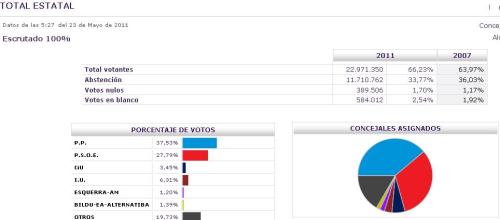 A casi una semana de su nacimiento en España, ya tenemos la primera señal (y el primer emergente) de un beneficiario claro de la «protesta de los indignados» en las urnas: El Partido Popular arrasó electoralmente el domingo al PSOE, el partido en el gobierno.