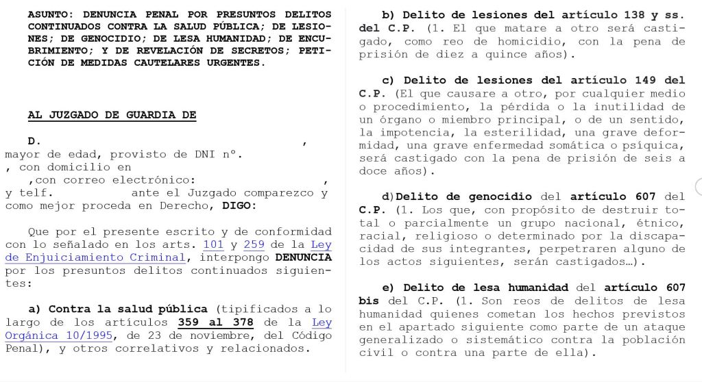 Enlace para la descarga de la denuncia contra las vacunas COVID
