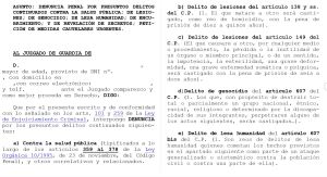 Para materializar la denuncia, hay que descargar la información que se incluye en el enlace que hay más abajo, imprimir el documento de denuncia (44 páginas) y grabar en un DVD o PENDRIVE la documentación adjunta como ANEXOS (4,3 Gb). A continuación rellenar en la primera hoja los datos personales de la persona que presenta la denuncia y firmar la denuncia en la última hoja. Finalmente, entregar en el juzgado de guardia en un sobre el documento y el DVD y llevarse una copia sellada de la primera hoja de la denuncia.