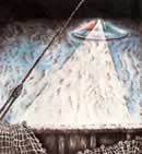 Ilustración de un Osni cerca de un barco, casi todo los avistamientos son realizados por marinos.